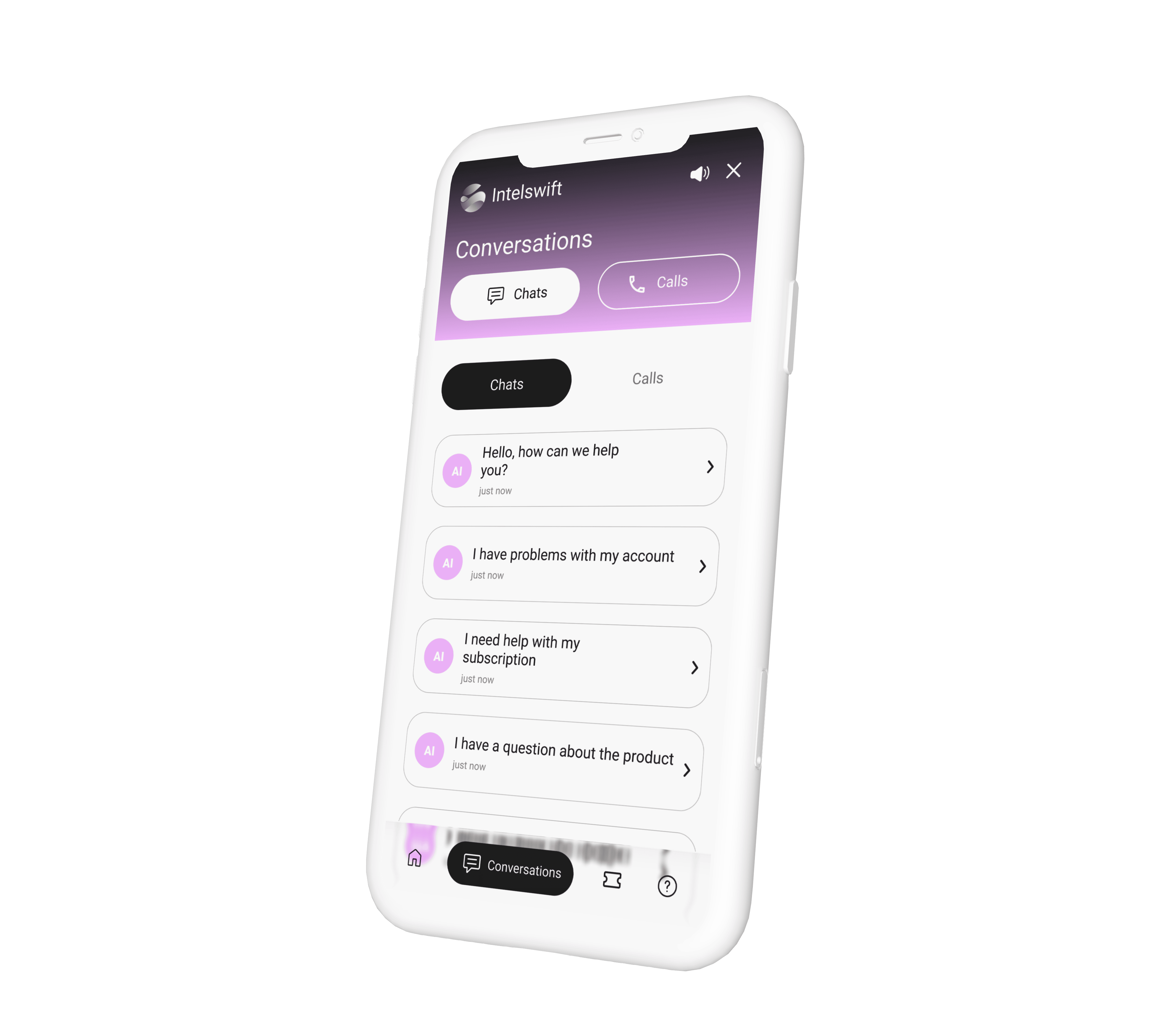 It's more than a chatbot solution. Intelswift ensures omnichannel connectivity with your audience by optimizing responses routing rules and combining a live chat, shared inbox, a knowledge base, AI-driven communication and data analysis tools. Your platform for support and growth is ready to launch.