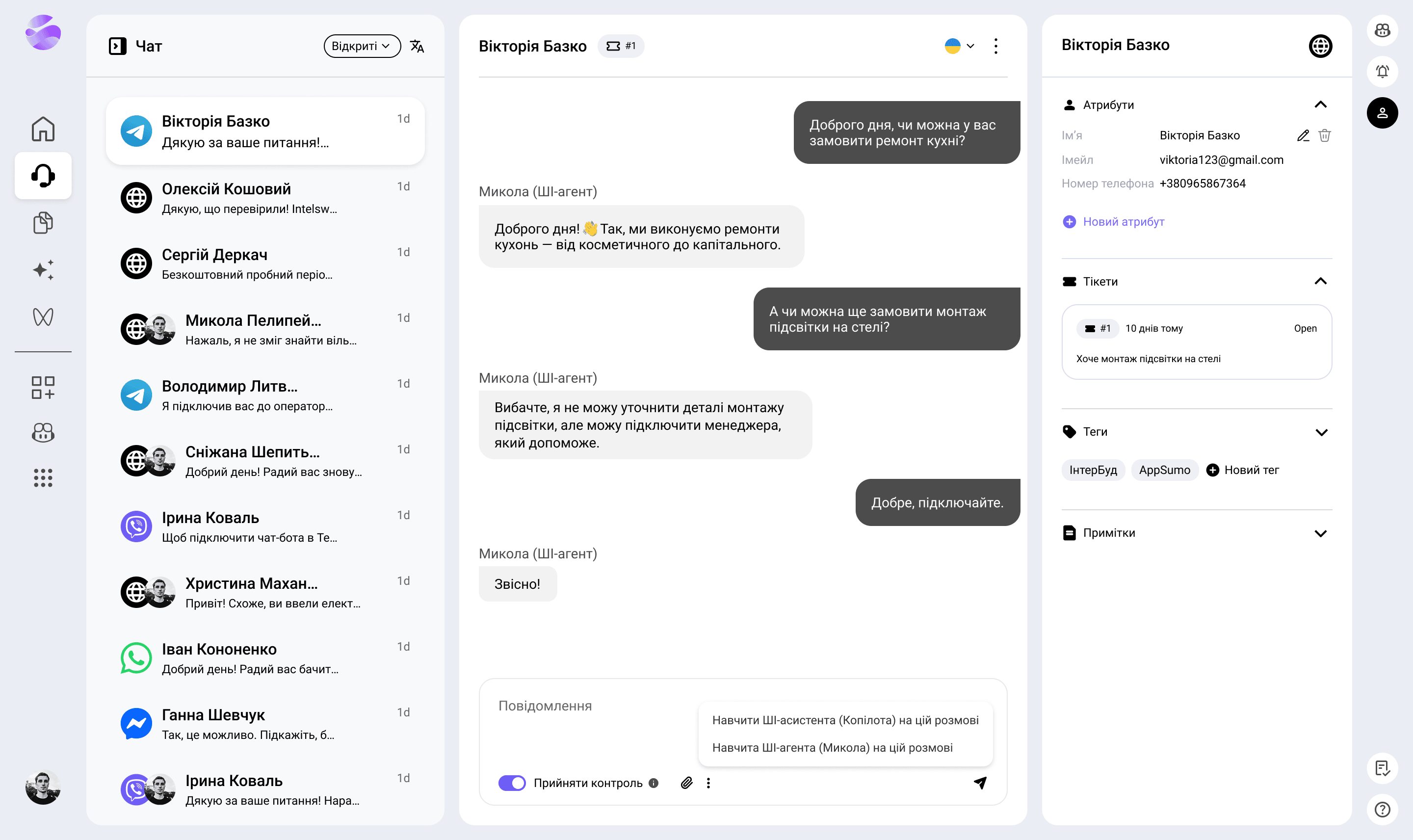 ШІ-асистент (Копілот) допомагає підсилювати людей операторів. Він надає підказки або скрипти для відповідей, що підвищує ефективність команди підтримки.