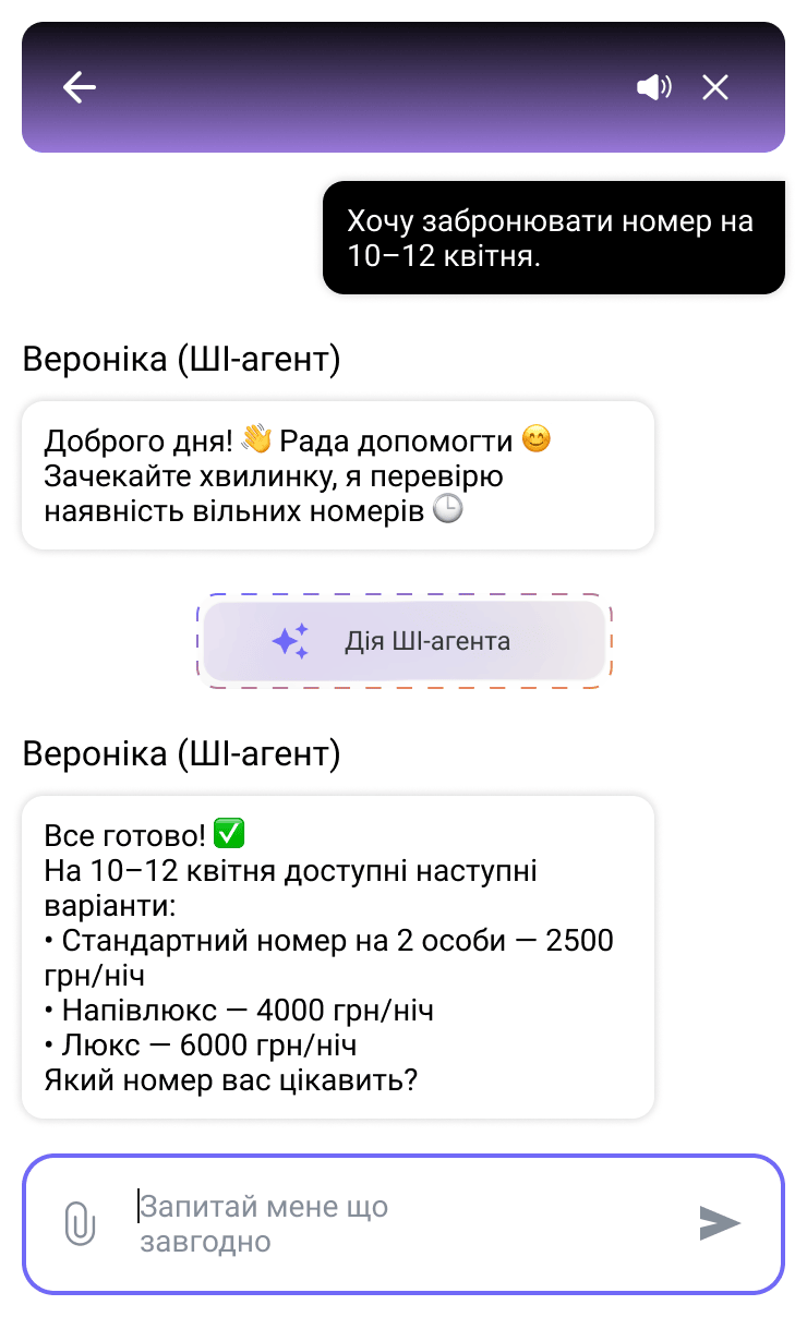 Розумний ШІ не просто відповідає клієнтам, він робить дії, що розвантажує підтримку та підвищує якість та швидкість обслуговування